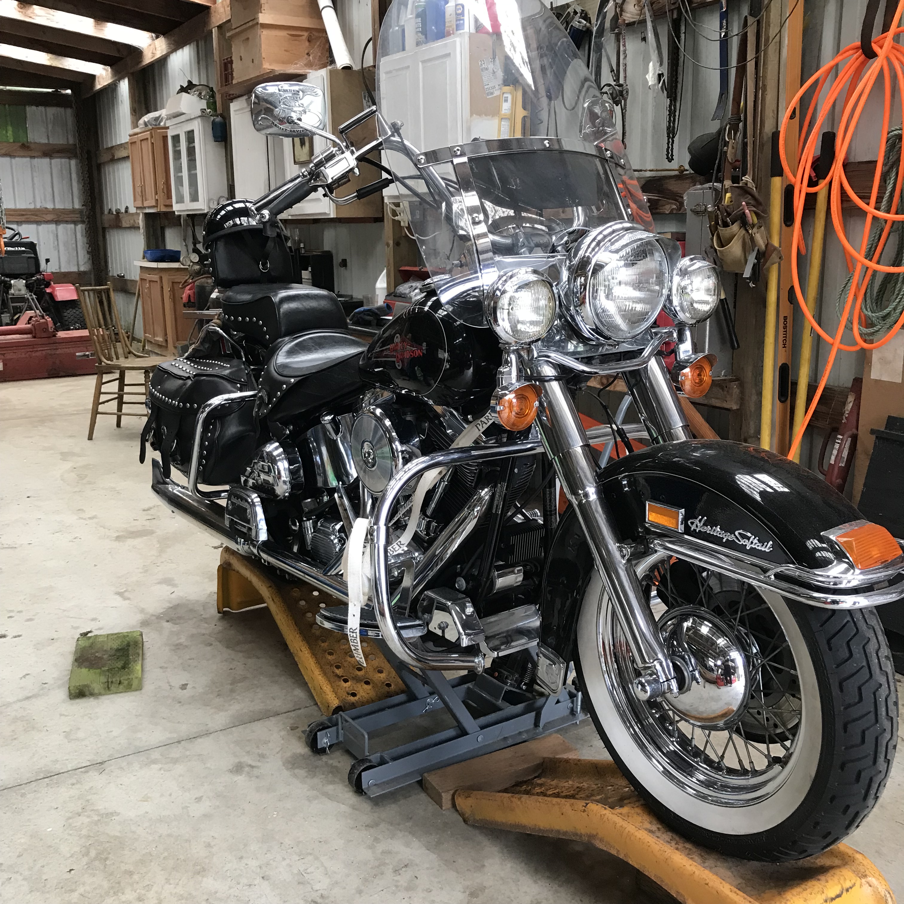 Getting the lift positioned, front to back and not interfering with the shocks underneath (Softail rear frame) is tricky.
